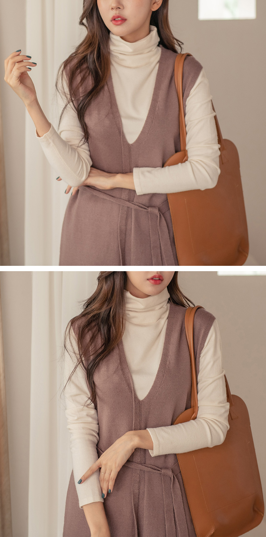 니트 소재의 롱 민소매